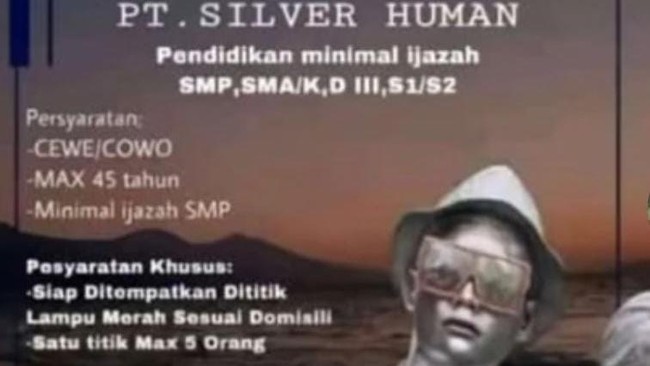 Dalam unggahan yang beredar di media sosial pamflet lowongan kerja manusia silver itu berisi informasi syarat pendaftaran. Pamflet itu tertulis lowongan kerja dibuka PT Silver Human.