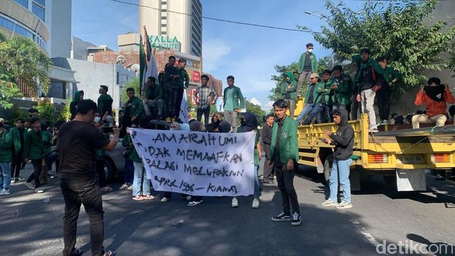 Pantauan detikSulsel di lokasi, Kamis (24/4/2025), massa mulai berdatangan sekitar pukul 15.03 Wita. Rombongan mahasiswa tampak mengendarai motor dari dalam area kampus menuju depan TPU Panaikang.
