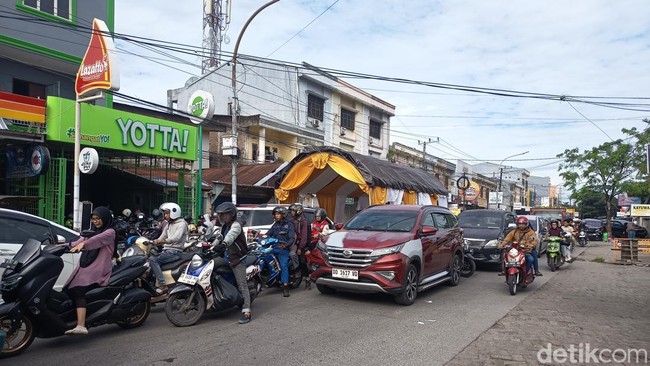 Kemacetan terjadi dari arah Jalan Muh. Tahir menuju Jalan Daeng Tata Raya, begitu pun sebaliknya. Arus lalu lintas tersendat parah karena kendaraan harus melambat saat melintasi tenda yang berdiri di badan jalan.