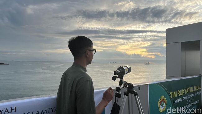 Pemantauan hilal 1 Zulhijjah dan Idul Adha 1446 H/2025 M di Kota Makassar, Sulawesi Selatan (Sulsel) diwarnai cuaca mendung. Awan tebal ini dikhawatirkan menghalangi teropong untuk melihat hilal.