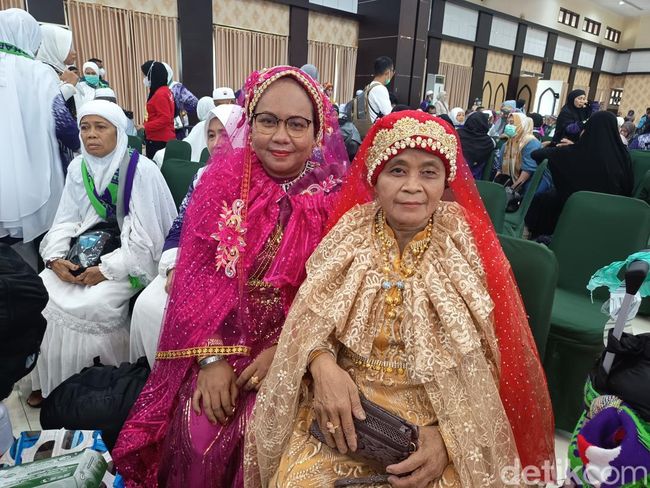 Sebanyak 392 jemaah haji kelompok terbang (kloter) kedua debarkasi Makassar telah tiba di Asrama Haji Sudiang, Kota Makassar, Sulawesi Selatan (Sulsel). Sejumlah jemaah tampil mencolok dengan busana glamor dibalut perhiasan sepulang dari tanah suci.