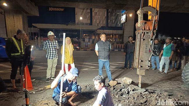 Pantauan detikSulsel di lokasi, Jumat (20/6/2025) pukul 22.30 Wita, Hamzah Ahmad tampak memantau sejumlah petugas PDAM Makassar mulai melakukan penggalian di ruas jalan. Mereka pun menggunakan ekskavator bor untuk mempermudah proses penggalian.