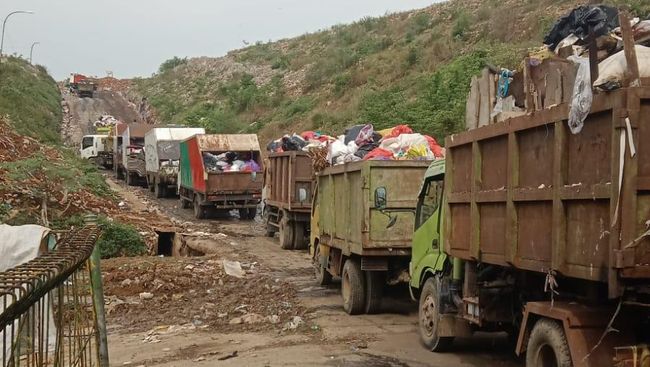 Penumpukan truk pengangkut sampah terjadi di Tempat Pembuangan Akhir (TPA) Antang, Tamangapa, Makassar, Sulawesi Selatan (Sulsel). Kondisi ini terjadi sekitar 17 jam lantaran tujuh alat berat yakni ekskavator rusak bersamaan.