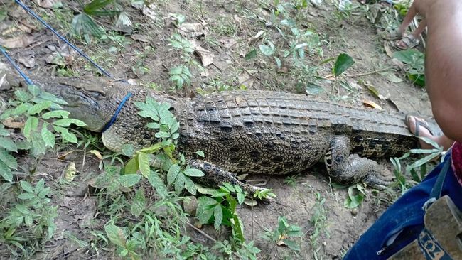 "Kita ambilkan daging baru dijerat di lehernya. Dia mengamuk dulu, melawan, kita kewalahan, baru saya tombak pakai besi, setelah melemah baru kita tarik ke pinggir sungai," bebernya.