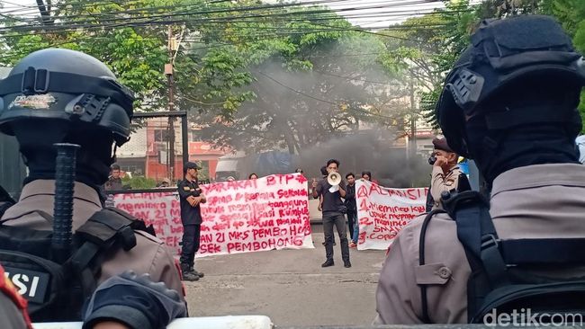 Sejumlah massa dari Aliansi Masyarakat BTP di Makassar menggelar demonstrasi di depan Kantor Dinas Pendidikan (Disdik) Sulawesi Selatan (Sulsel). Mereka menduga ada praktik jual beli kursi pada proses Seleksi Penerimaan Murid Baru (SPMB) di SMAN 21 Makassar.