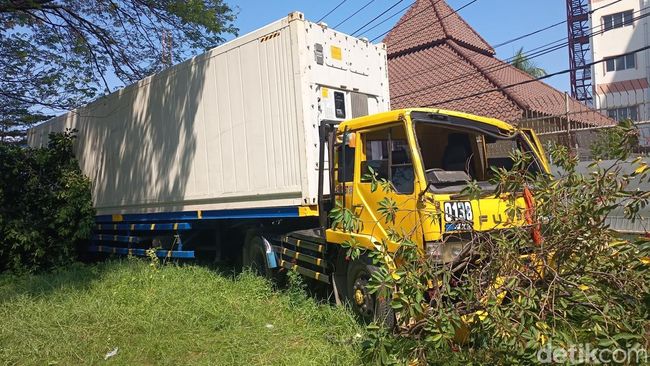 Sebuah truk tronton menabrak pagar taman di Jalan Kalimantan, Kota Makassar, Sulawesi Selatan (Sulsel), diduga akibat rem blong. Akibat insiden itu, sopir truk mengalami luka lecet.