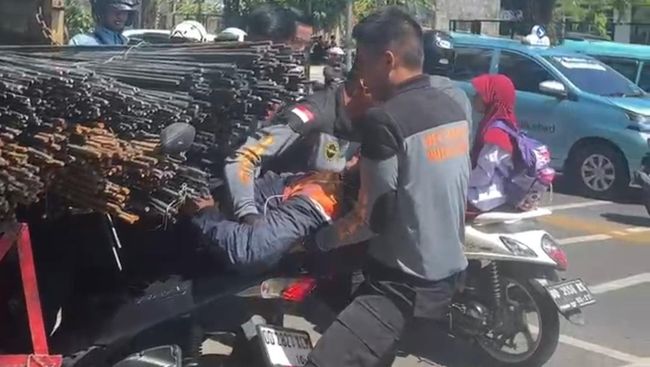 Berdasarkan video yang dilihat, seorang pria pengendara motor masuk ke dalam bak terbuka mobil truk yang sedang parkir di bahu jalanan. Pengendara motor tersebut sebelumnya menabrak truk hingga beberapa bagian tubuhnya nampak tertusuk besi yang dimuat di bagian belakang mobil.
