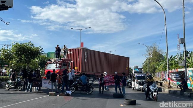 Pantauan detikSulsel, Senin (1/9/2025), massa mulai berdatangan di lokasi sekitar pukul 15.00 Wita. Mereka langsung menyandera kontainer untuk digunakan sebagai panggung orasi.