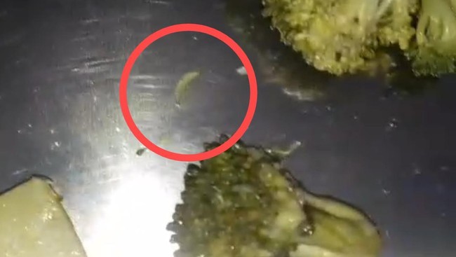 Dalam video beredar, salah seorang siswa merekam dengan ponselnya ulat yang berada di sayur brokoli makanannya. Dia langsung berteriak dan melaporkannya ke guru.