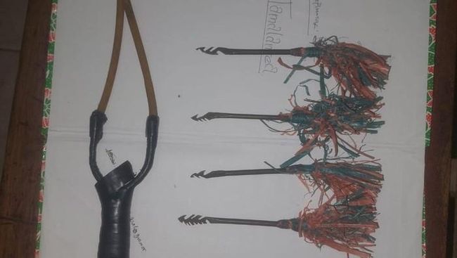 "Dari hasil penggeledahan, polisi menemukan sejumlah barang bukti berupa satu bilah badik, satu pangkal ketapel, dua anak panah, dua petasan, dan satu unit sepeda motor warna hitam tanpa pelat," katanya.