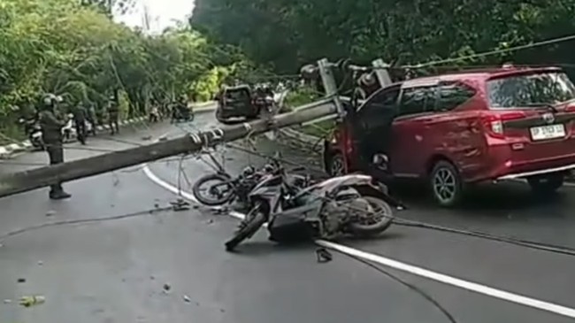 Sementara, dalam video yang dilihat detikSulsel, ada sejumlah mobil yang tertimpa tiang hingga kabel listrik. Beberapa pemotor juga terjebak di antara tiang dan kabel yang melintang di jalanan.
