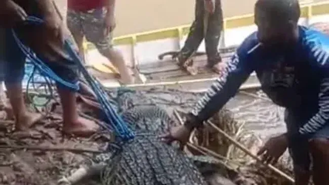 Seekor buaya berukuran 4 meter ditangkap hidup-hidup oleh warga di Kota Palopo, Sulawesi Selatan (Sulsel). Buaya itu berakhir tragis setelah perutnya dibelah warga lantaran diduga menerkam wanita bernama Elisabeth di Kabupaten Luwu.
