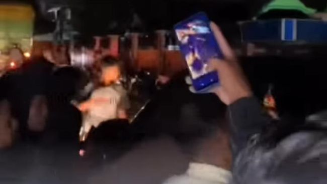 Dalam video itu juga terekam beberapa warga melayangkan pukulan ke salah satu pelaku. Namun anggota polisi segera membawa ketiganya untuk diamankan.