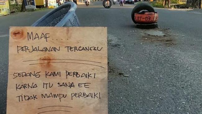 "Sudah 2 bulan berlubang di situ tapi sama sekali belum ada perhatian dari pemerintah untuk memperbaiki. Kami kasihan lihat motornya orang banyak yang rusak, ada yang pecah ban sampai patah velgnya," jelas Ikbal.