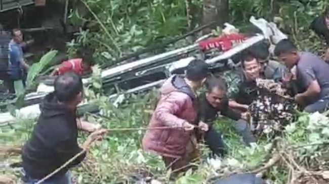 "Kondisi bahu jalan lembek lalu amblas, sehingga bus yang dikemudikan YT tersebut terperosok jatuh ke dalam jurang di sebelah kirinya," jelasnya.