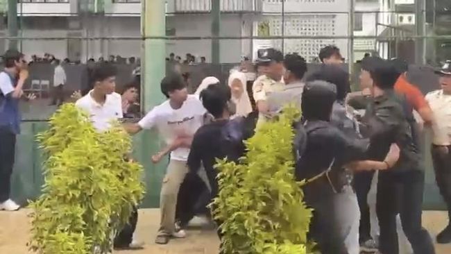 Beberapa mahasiswa mencoba memisahkan rekannya dari kerumunan tersebut. Sebagian lainnya tampak menonton sambil merekam peristiwa tersebut.