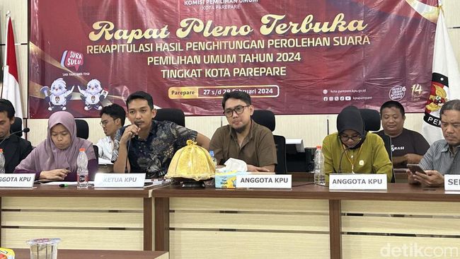 "Alhamdulillah kami menyelesaikan rekapitulasi perhitungan perolehan suara pemilu hari ini. Total 2 hari untuk pleno rekapitulasi perhitungan hasil," kata Ketua KPU Parepare Muh Awal Yanto kepada detikSulsel, Rabu (28/2/2024).