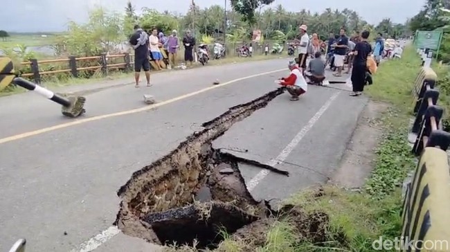 "Jadi untuk sementara kita tutup penuh agar menghindari tambah parah kerusakan jalan dan antisipasi terjadinya kecelakaan lalu lintas semua jenis kendaraan roda empat tidak dibolehkan lewat," paparnya.