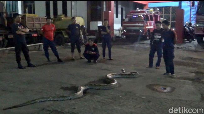 Ular piton berukuran 7 meter di Kota Parepare, Sulawesi Selatan (Sulsel), yang diduga mencari mangsa masuk ke permukiman warga. Damkar sempat kewalahan mengevakuasi hewan melata itu karena mendapat perlawanan.