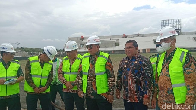 Penjabat (Pj) Wali Kota Parepare, Sulawesi Selatan (Sulsel) Abdul Hayat Gani meninjau renovasi Stadion Gelora BJ Habibie (GBH). Hayat mengungkap progres renovasi sudah 54 persen dan single seat atau kursi penonton sudah mulai dipasang.