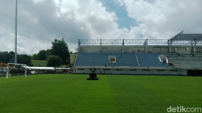 "Atap kan hanya tribun barat saja, kalau tribun timur, tribun selatan dan tribun utara tidak pakai atap. Itu setelah pemasangan atap baru lanjut lagi dipasang kursi single seat," terangnya.