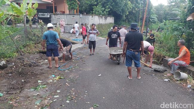 Ali mengatakan, material untuk perbaikan drainase dan mengecor bahu jalan itu dibeli dari uang patungan warga. Untuk pekerjanya juga dilakukan pemuda dan warga sekitar.