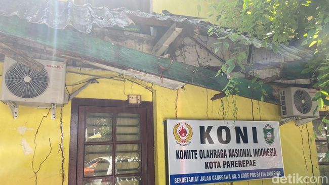 Pantauan detikSulsel di lokasi, Rabu (7/5/2025), kantor KONI Parepare yang terletak di Jalan Ganggawa, Kelurahan Mallusetasi, Kecamatan Ujung terlihat tidak terawat. Atap bagian depan kantor hancur dan dipenuhi rayap.