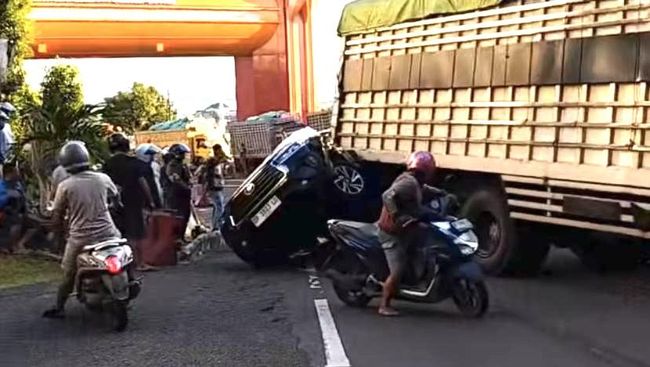 Saat bergerak mundur, truk itu menabrak mobil merek Innova dan motor. Tabrakan itu membuat mobil Innova mengalami kerusakan parah pada bagian kiri.