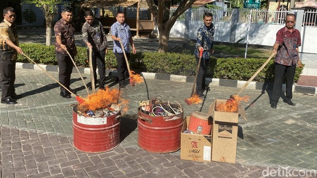 Pemusnahan HP dan barang terlarang dengan cara dibakar itu berlangsung di halaman Lapas Parepare, Kamis (2/10/2025). HP milik para napi ditemukan di tempat yang bisa mengecoh petugas.