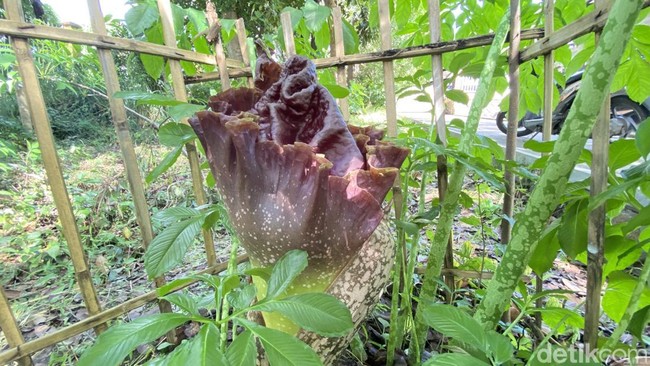 "Iya tumbuh sendiri. Sejak lama ini, sekitar 2022 mulai tumbuh. Dia tumbuh secara alami. Bunga bangkai Suweg, nama latinnya itu Amorphophallus. Iye sudah sekitar 1 meter lebih itu (tingginya)," jelas Arnol kepada detikSulsel, Jumat (14/11/2025).
