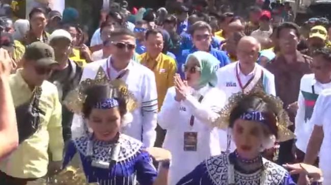 Setibanya di pintu gerbang, Appi-Aliyah membuka kacamatanya. Keduanya kemudian lanjut masuk dengan pengawalan ketat aparat kepolisian dan disambut dengan tarian.