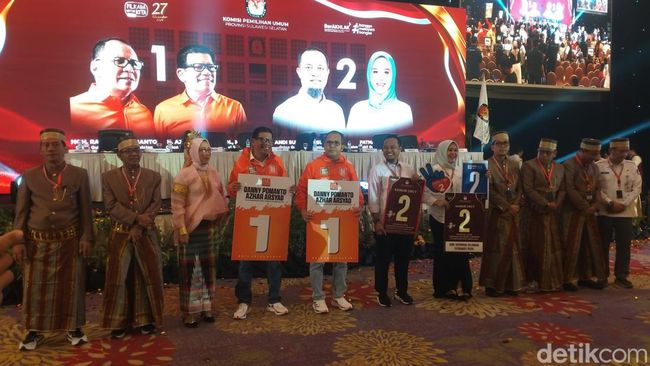 KPU Sulawesi Selatan (Sulsel) resmi menetapkan nomor urut pasangan calon gubernur (cagub) dan calon wakil gubernur (cawagub) Sulsel. Pasangan calon (paslon) Danny Pomanto dan Azhar Arsyad (Danny-Azhar) mendapatkan nomor urut 1, sedangkan Andi Sudirman Sulaiman-Fatmawati Rusdi (ASS-Fatma) nomor 2 urut.