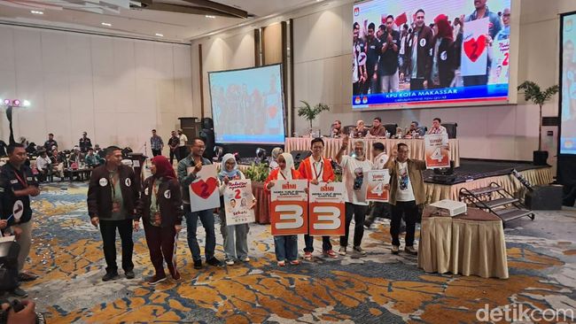 KPU Kota Makassar, Sulawesi Selatan (Sulsel), telah menggelar rapat pleno terbuka pengundian dan penetapan nomor urut pasangan calon (paslon) wali kota dan wakil wakil kota pada Pilwalkot Makassar 2024. Tiap paslon kini memiliki nomor urutnya masing-masing.