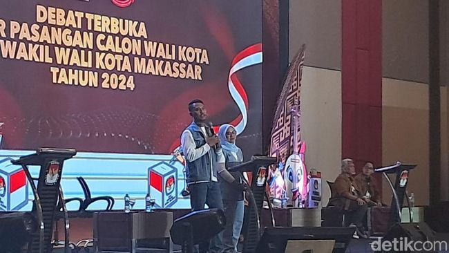 Debat terbuka Pilwalkot Makassar berlangsung di Hotel Dalton, Jalan Perintis Kemerdekaan, Makassar, Sabtu (26/10/2024). Awalnya, moderator debat Angellica De Evagam menanyakan soal infrastruktur modern ramah lingkungan dalam mendukung perekonomian.