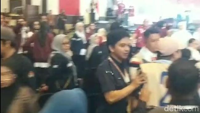 Tim paslon nomor urut 1 Munafri Arifuddin-Aliyah Mustika Ilham keberatan melihat tim pendukung Seto-Rezki membawa pengeras suara ke dalam ruangan. Bahkan terlihat sejumlah tim Appi-Aliyah berusaha menyeberang ke kursi pendukung Seto-Kiki.