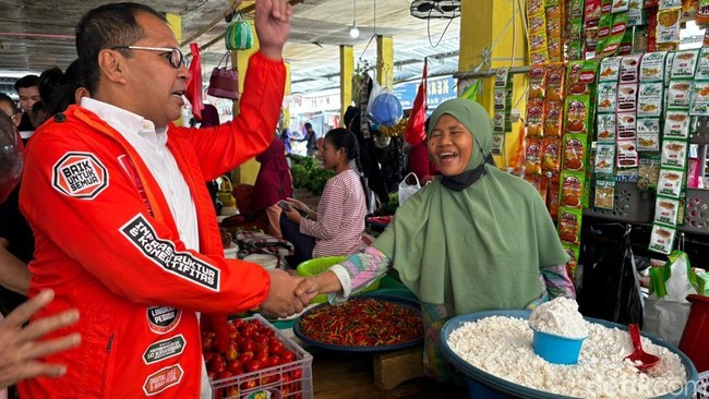 Calon Gubernur Sulsel nomor urut 1, Moh Ramdhan 'Danny' Pomanto mengunjungi Pasar Sentral Masamba, Luwu Utara (Lutra). Ada momen Danny disapa emak-emak yang sedang bermain domino di dalam pasar.