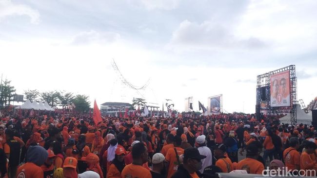 Diketahui, massa mulai berdatangan dan memadati lokasi kampanye akbar sejak pukul 14.00 Wita. Mereka memadati lapangan Tugu MNEK dengan mengenakan baju oranye.