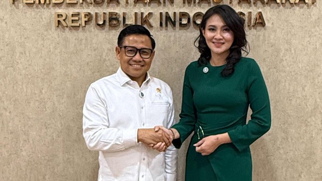 Calon Gubernur Maluku Utara (Malut) nomor urut 4, Sherly Tjoanda sowan ke Ketua Dewan Pengurusan Pusat (DPP) Partai Kebangkitan Bangsa (PKB), Muhaimin Iskandar. Sherly datang untuk menyampaikan hasil hitung cepat atau quick count di Pilgub Malut 2024.