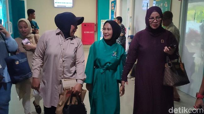 Naili dan tim langsung menuju ruang tunggu di lobi RS Labuang Baji. Tampak Naili mengenakan perpaduan baju hitam dan cokelat.