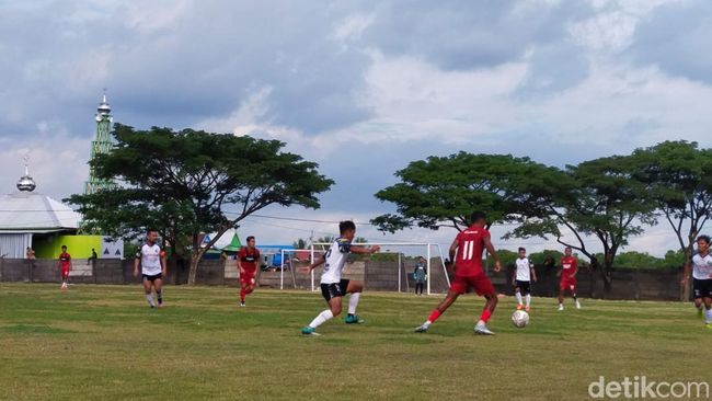 Laga uji coba yang berlangsung di Lapangan Bosowa Sport Center (BSC), Jalan Teuku Umar Raya, Kecamatan Tallo, Makassar, Selasa (24/5/2022). PSM Makassar bermain imbang 1-1 melawan OTP 37 FC Mamuju.