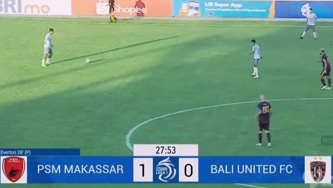 Everton Nascimento dilanggar bek Bali United, Jajang Mulyana pada menit ke-26. PSM mendapat hadiah penalti. Everton yang menjadi algojo sukses mencetak gol untuk keunggulan PSM 1-0 untuk PSM.