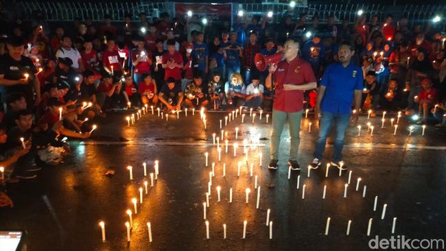 "Kita undang perwakilan suporter Indonesia di Makassar, Arema, Bonek kita kumpul untuk membakar 1.000 lilin sebagai wujud duka yang kita alami bersama," kata Presiden The Macz Man Indonesia Alim Bachri saat di lokasi, Minggu (2/10).
