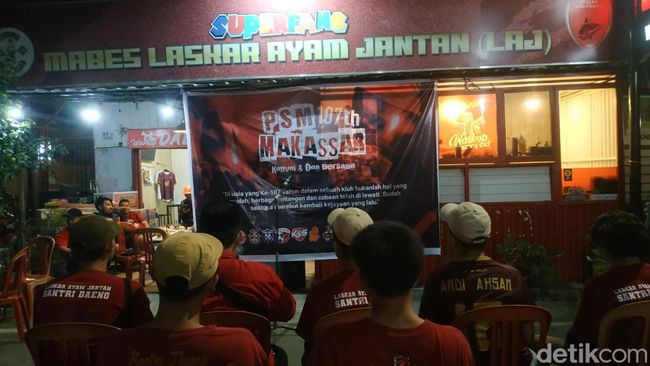 Pantauan detikSulsel, di Mabes LAJ, Jalan Beruang, Kota Makassar, Rabu (2/11/2022) sekitar pukul 20.00 Wita, suporter PSM satu persatu mulai hadir meramaikan kegiatan doa bersama. Termasuk Direktur Utama PSM, Sadikin Aksa juga hadir.