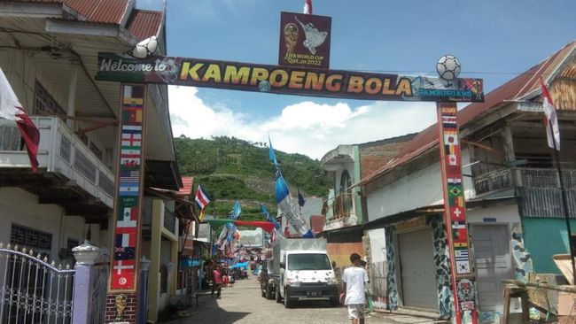Pantauan detikcom, Senin (7/11/2022), bendera peserta piala dunia dikibarkan di depan rumah warga, sudut kampung, pusat keramaian, hingga di puncak bukit. Banyaknya jumlah bendera yang dikibarkan, membuat suasana di kampung bola ini tampak meriah berhias bendera.
