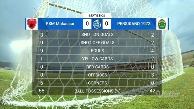 PSM Makassar yang menguasai pertandingan mampu melepaskan 9 tembakan dengan 3 diantaranya on target. Sementara Persikabo hanya melepaskan 2 tembakan dengan keduanya tepat sasaran.