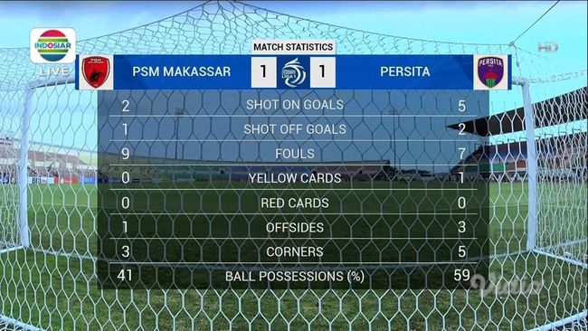 Secara penguasaan bola, Persita lebih unggul dengan 59% ball possesion. Sementara PSM hanya 41%.