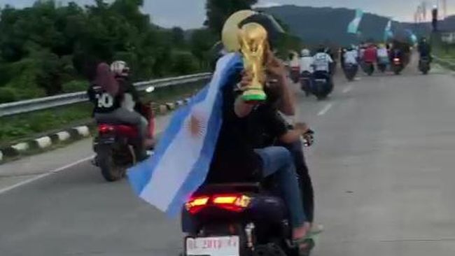 "Ada 200-an orang tadi yang ikut (pawai). Seluruh fans Argentina di Mamuju ada yang pakai jersey, bawa bendera sama itu trofi," kata Ketua Komunitas Fans Argentina Mamuju Radit kepada detikcom, Minggu (18/12/2022).