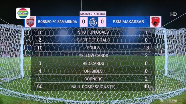 Sementara PSM mendapatkan kesempatan 2 tendangan pojok, sedangkan Borneo hanya sekali.