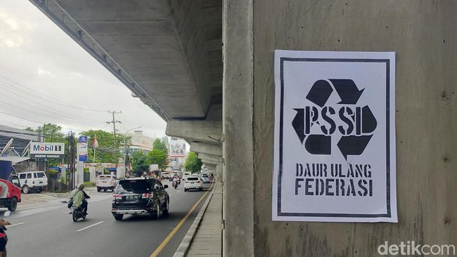Poster bertuliskan 'Daur Ulang PSSI' tersebut bertebaran di sepanjang Jalan AP Pettarani, Kecamatan Panakkukang, Makassar. Poster tersebut menempel di jembatan fly over dan berbagai tembok gedung perkantoran.
