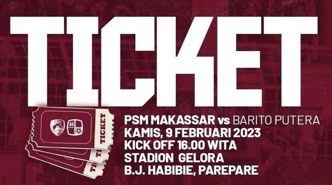 PSM Makassar akan menjamu Barito Putera dalam laga pekan ke-23 Liga 1 2022/2023. Berikut daftar harga dan mekanisme pembelian tiket yang akan dibuka sore ini.